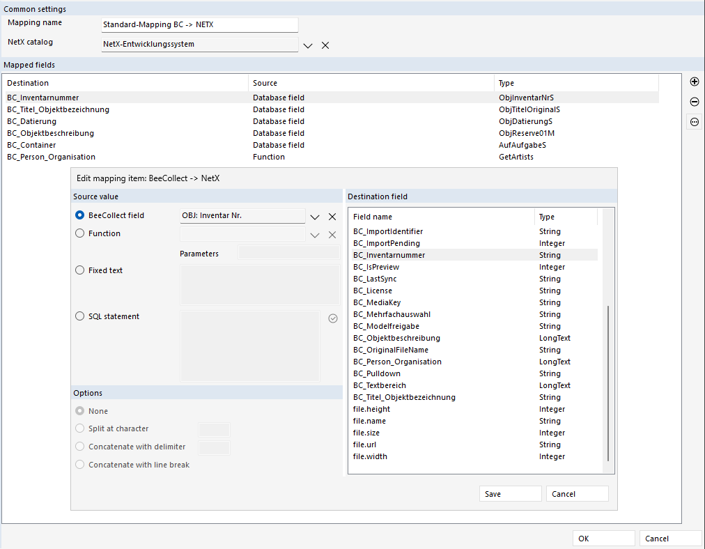 Knowledgebase ► BeeCollect Media 2 ► Feldzuordnung BeeCollect -> NetX (Asset)