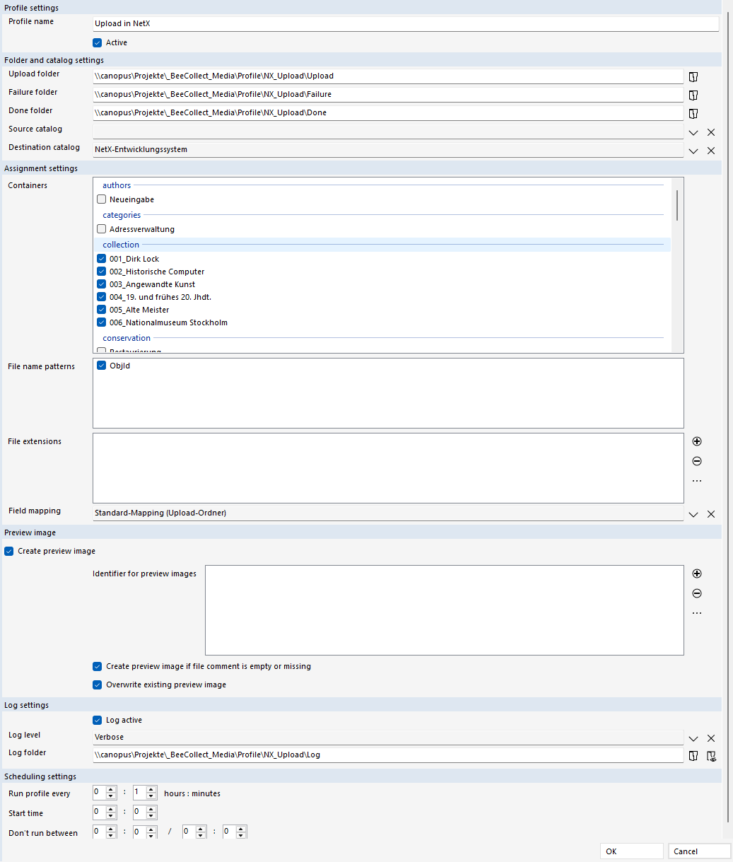 Sollen Medien, welche momentan weder mit BeeCollect Professional noch in einem Digital Asset Management-System verwaltet werden, in einen Medienkatalog in BeeCollect Professional importiert werden, kommt das Profil Digital Asset Management (common): File import from upload folder im BeeCollect Media Client bzw. nach Verfügbarkeit im Modul Profile und Jobs in BeeCollect Professional zum Einsatz. Da ein Medienkatalog auch auf ein externes Digital Asset Management-System wie NetX verweisen kann, kann über dieses Profil auch der Import in NetX erfolgen.